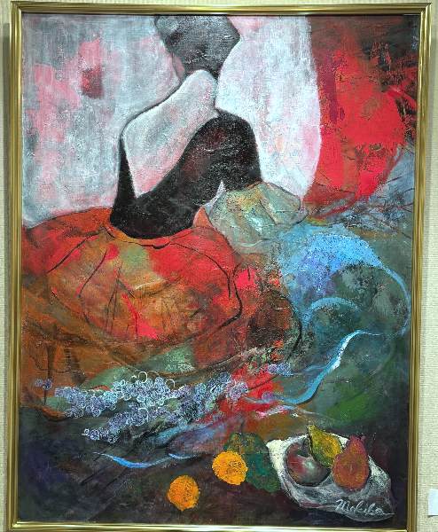 (← 友人の油彩画 赤が効いていますね〜♪)