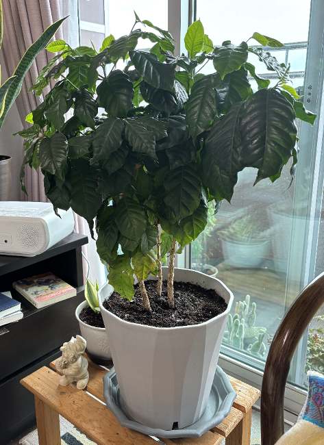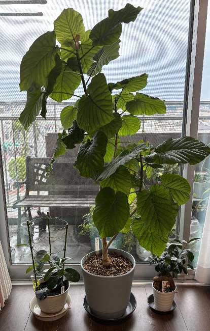 下にあるのはマダガスカル・ジャスミンとガジュマルの鉢