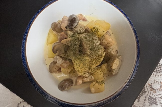 ◆ 今日の新メニュー: きのことじゃがいものフリカッセ