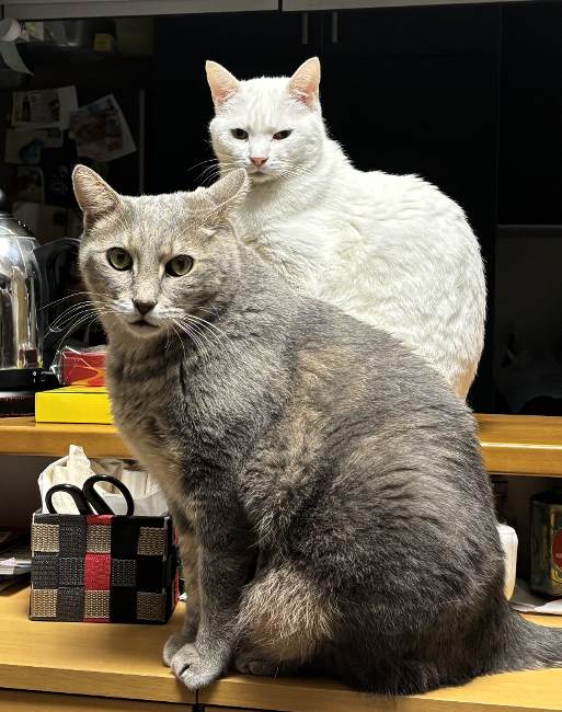 (← 「ご飯ちょうだい」とそろって待つルネとアズ)