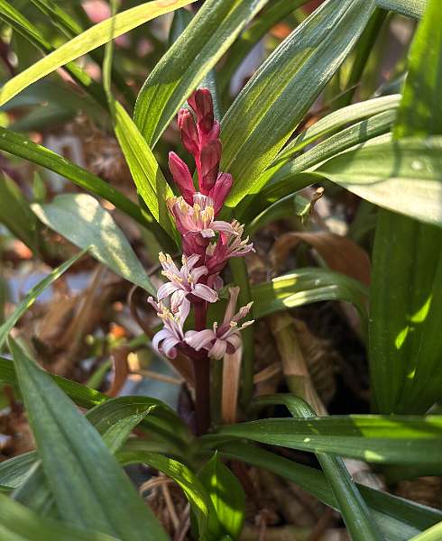 ベランダの水遣りをして、キチジョウソウが咲き、