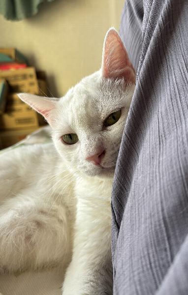 (← わたしの足元にすり寄って甘えるルネ)