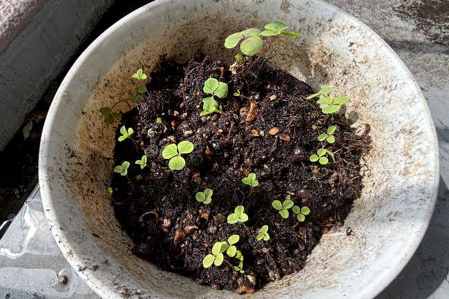 ベランダの水遣りしたついでにオキザリスが芽を出してきたので株分けする。