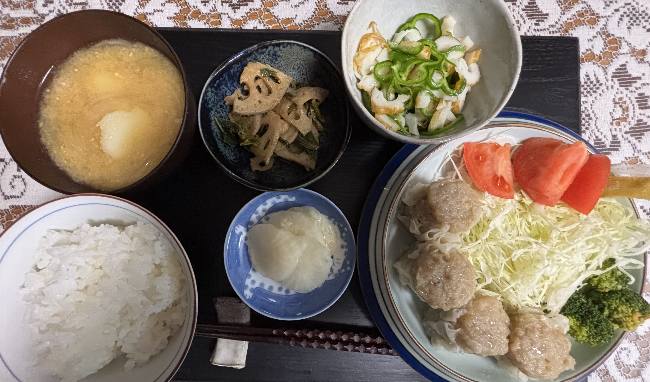 夕食には、大阪で買ってきた蓬莱のしゅうまいをいただく。