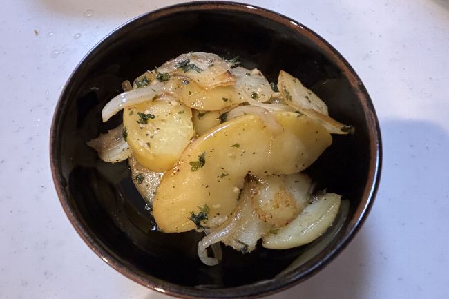 ◆ 今日の新メニュー: リヨン風りんごとじゃがいものソテー