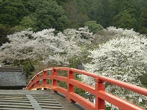そして到着したのは、かの有名な「女人高野 室生寺」だ。 夕刻が迫っていたが、真っ赤な橋に映える桜と門を見ながら、石の階段をのぼる。金堂の内陣に並ぶ、ご本尊の釈迦如来像をはじめとする仏像は、薄暗い中に神秘的に沈んで、幽玄に見えた。前に並ぶ十二神将像は、運慶作と伝えられているそうだ。古くは朱に塗られていたのだろう、柱や壁に赤い色がかすかに残っている。 石段を上り詰めると、頭上に五重塔がそびえている。解説によると、現存する古建築の五重塔のなかでは最も小さい(16.7メートル)そうだが、前にある急な階段のせいだろう。この塔は、平成10年(1998年)秋に台風で倒れた樹齢600年の杉によって、無残に壊れたニュースが記憶に新しい。その後、わずか2年で修復され、優美な姿で立っている。創建された当時は、ほかのお堂も色鮮やかで、さぞ美しい光景であったろうとしのばれる。 しっとりとした情感のある室生寺だった。