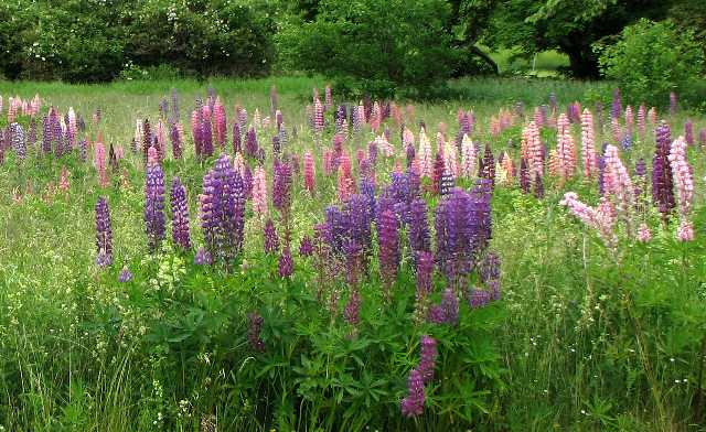 両側にはルピナスをはじめ、いろいろな花が咲いていて、なかなか進まない。