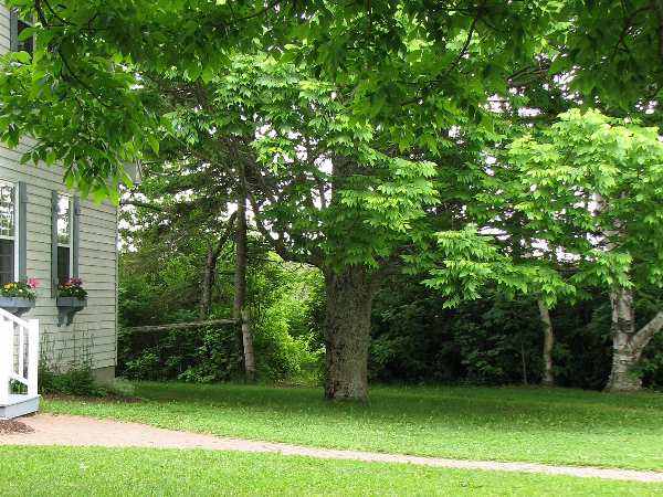 芝生を50メーターほど横切ると、樹々や潅木があってそこはもうグリーンゲイブルスの敷地。