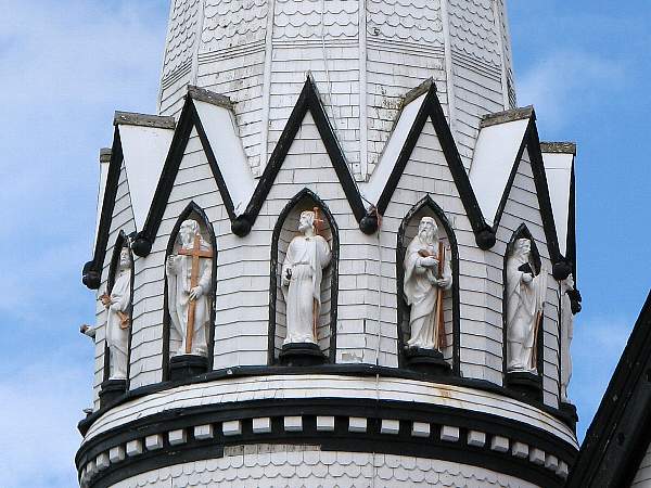 尖塔の中ほどにある12使徒の彫刻もユニークだ。